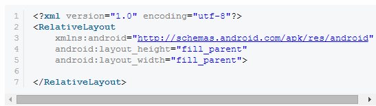 اول یک relative layout در فایل xml تعریف کنید ، اگر میخواهید در layout کنترل کل صفحه نمایش را در برگیرد ، خصوصیت ارتفاع و عرض آن را fill_parent قرار دهید.فایل xml resource شما الان باید چیزی شبیه به شکل زیر باشد:مرحله دو :تعیین کنترل های فرزند